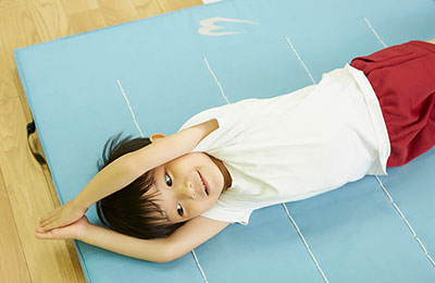 運動遊びバランス運動、柔軟性トレーニング、体幹トレーニング。室内外での運動活動で、体を動かす楽しさを得る。(一本橋、だるまさんが転んだ、大縄跳び、マーカー返し、ダンスなど)