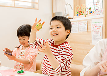 集団での遊び、創作活動ごっこ遊び、見立て遊び、つもり遊びや、グループで、季節に合わせた創作活動や他者と協力しながら達成感を味わうプログラム。